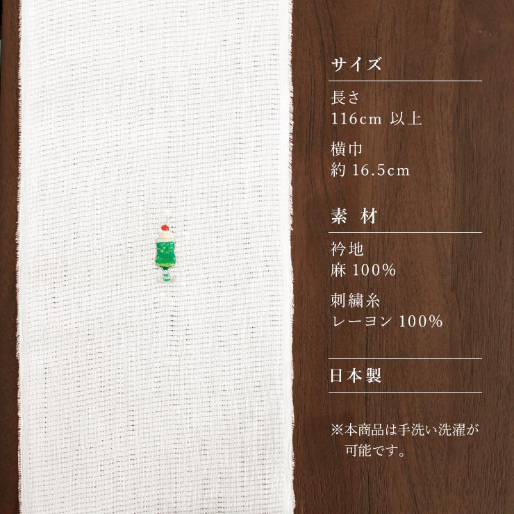 | サイズ 長さ:116cm以上 横幅:約16.5cm 素材 衿地:麻100% 刺繍糸:レーヨン100% 生産 日本製 用途 江戸小紋 色無地 紬 浴衣など /単衣・盛夏の季節に(6月・7月・8月・9月頃) 備考 ご自宅でのお洗濯をされる場合、手洗いが可能です。 加工の性質上、水濡れや汗・摩擦等で色落ち、色移りする可能性がございます。 ・PC環境・画像の性質によって多少色が異なって見える場合がございます。 |