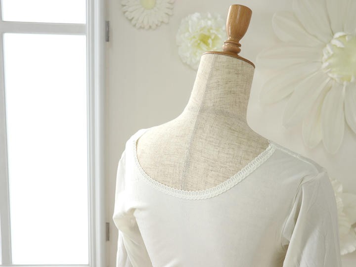 | 衿ぐりを大きくとっていますので、礼装用としてもOK♪ 衿元が大きく開いたワイド設計な上に、伸縮性が抜群の素材でごすので、 美容院で頭をセットした後でも安心、実は足から着脱出来ちゃいます(笑) |