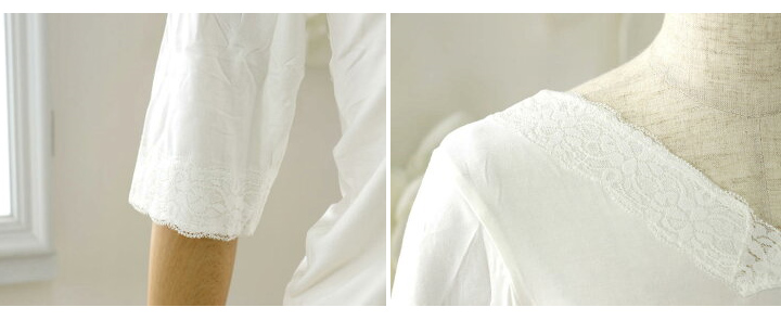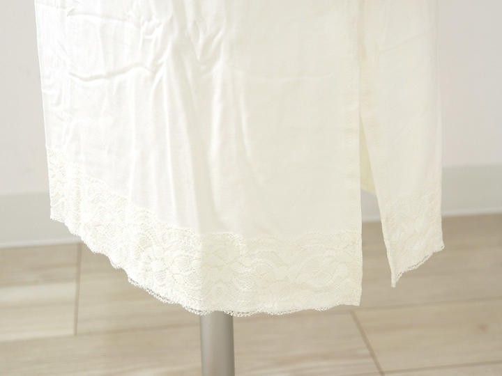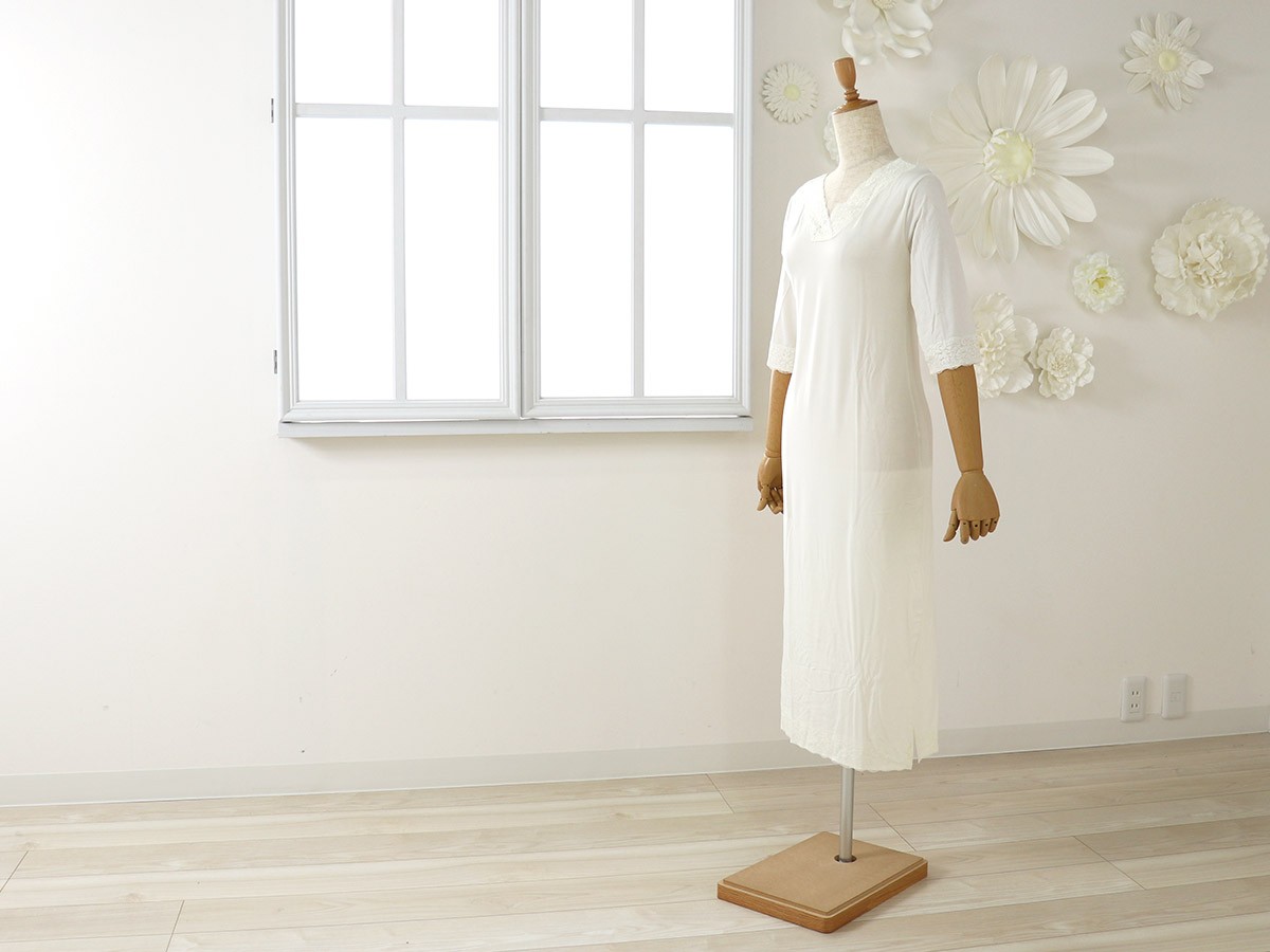 | 高級感のあるレースが袖と衿元についた上品なデザイン♪ 動きにフィットしてくれる七分丈のお袖はフレアー袖。ゆったり目で窮屈さを感じません。 女性にとってレースって年齢に関係なく憧れがありますよね♪こちらの肌着には袖と衿元に レースが施されていますので、着ていてちょっと嬉しくなります♪ |