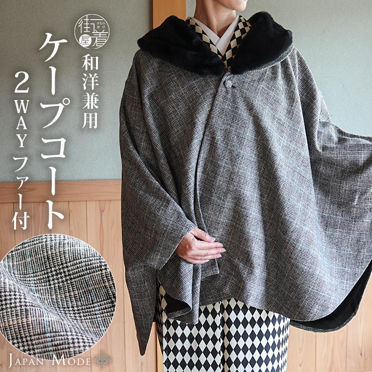| コーディネート | カジュアルな着物や洋服にもお使いいただけます。訪問着や礼装にも合わせてお使いいただけますが、道中のみにご使用ください。 こちらのケープコートは単品です。着物・小物は別売になります。 <モデル着用きものはこちら> |
