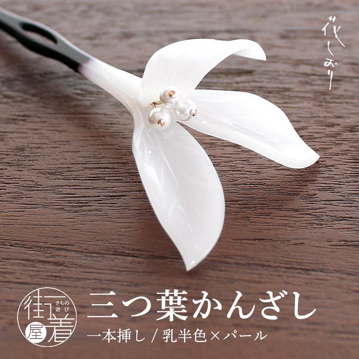 | 凛とした、美しい横顔 洗練された上品な装いに ・・・ 三つ葉かんざし(乳半色/パール) ・・・ 一点一点、繊細な作りでこだわりを感じる人気ブランド「花しおり」の、ほんのりとした透け感が涼し気な乳半色のかんざし。挿せば一瞬で夏の和装に粋な大人の華やかさをプラスしてくれます。 |