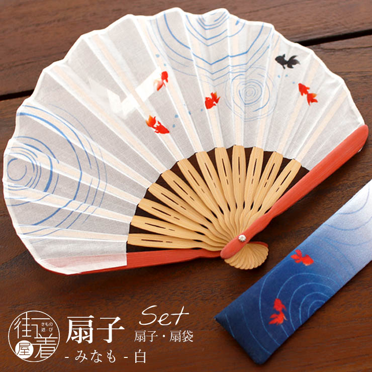 | 金魚柄がなんとも涼しげ 清涼感のある扇子 「 扇子 」+「 扇袋 」 セット みなも(白) 染骨/綿素材 |