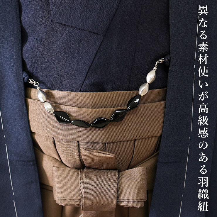 大きめで堂々とした存在感のあるストーンの羽織紐つき。カニカン仕様で取り外し可能ですので、お気に入りの羽織紐にも付け替えられます。