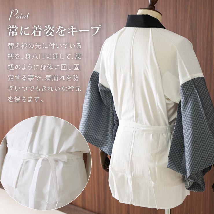| 【替え衿、替え袖を別途追加でご注文される場合】 替え衿…男性用は『ロング』タイプです。女性用とはファスナーの長さが異なるため併用出来ませんのでご注意くださいませ。 替え袖…男女兼用です。どのき楽っく替え袖でもお使い頂けます。 | |