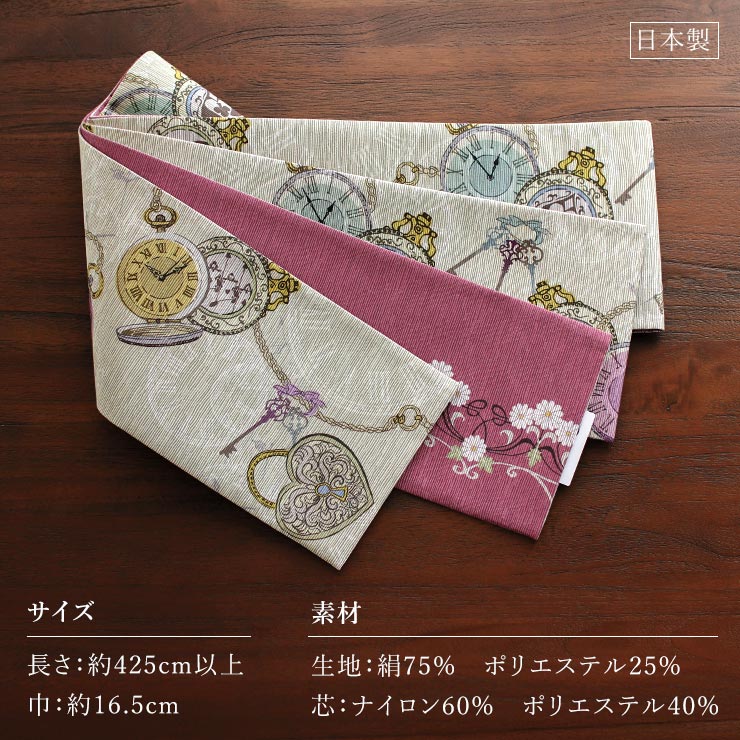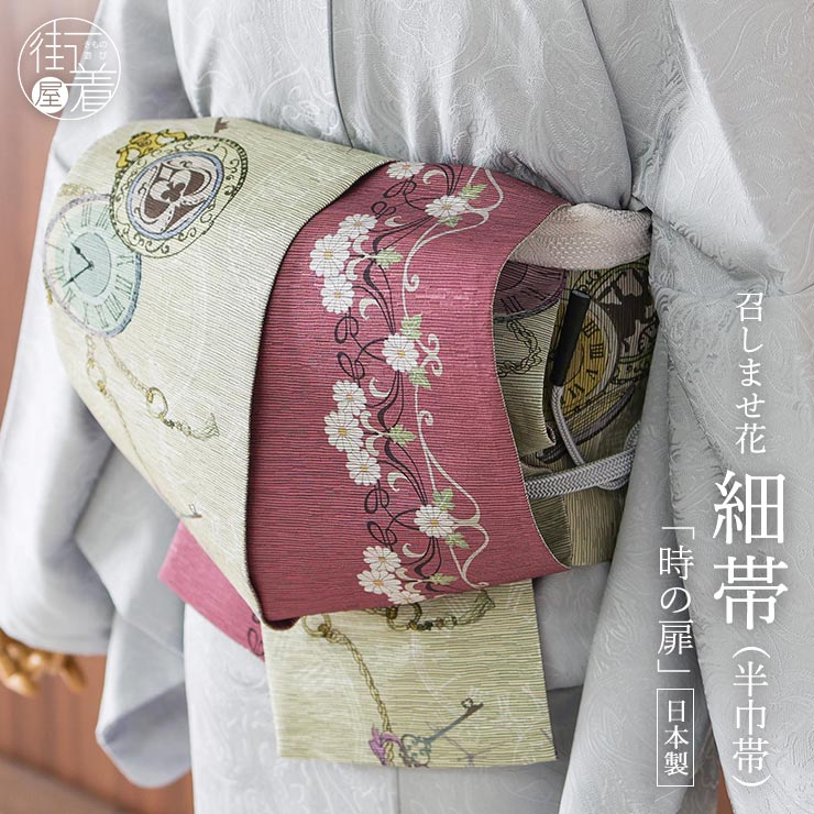 | 深みのある色彩とノスタルジックな世界観。 不思議な世界へいざなう、大人の半巾帯 「召しませ花」 半幅帯/細帯 <時の扉> サンドベージュ <日本製> 「着物を着たくなる着物」をコンセプトにした 「召しませ花」シリーズ。 本当に着物を着たい!と思えるような、心ときめく世界観が広がる半巾帯です。 |