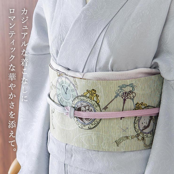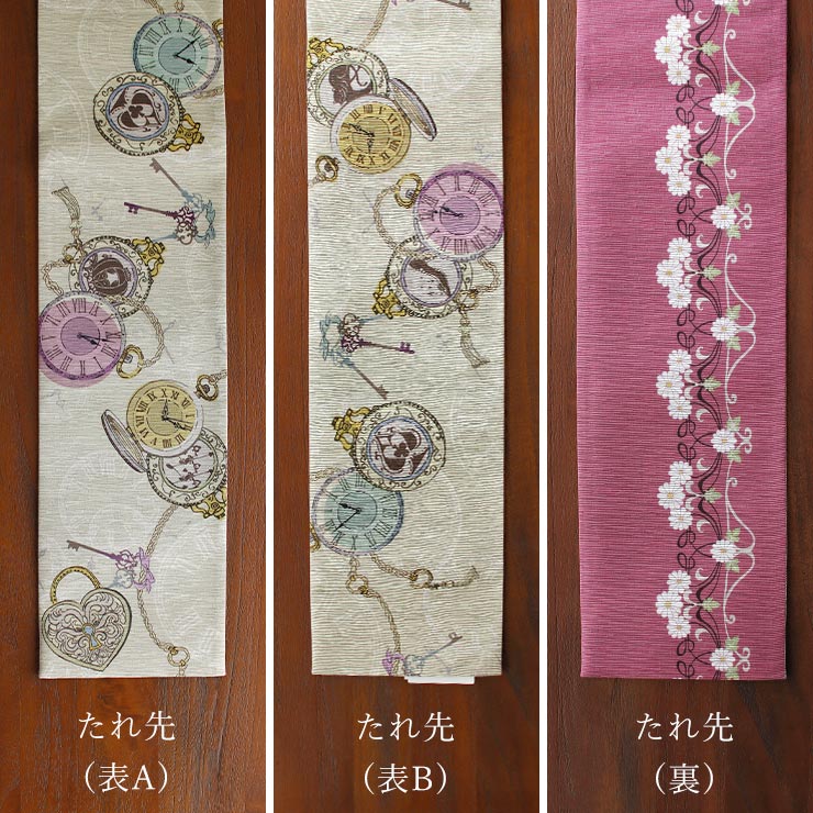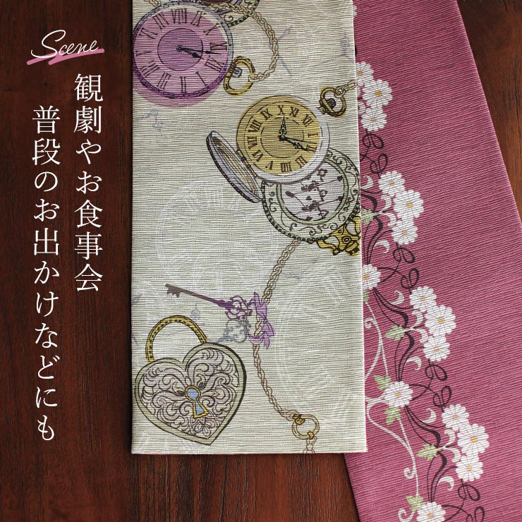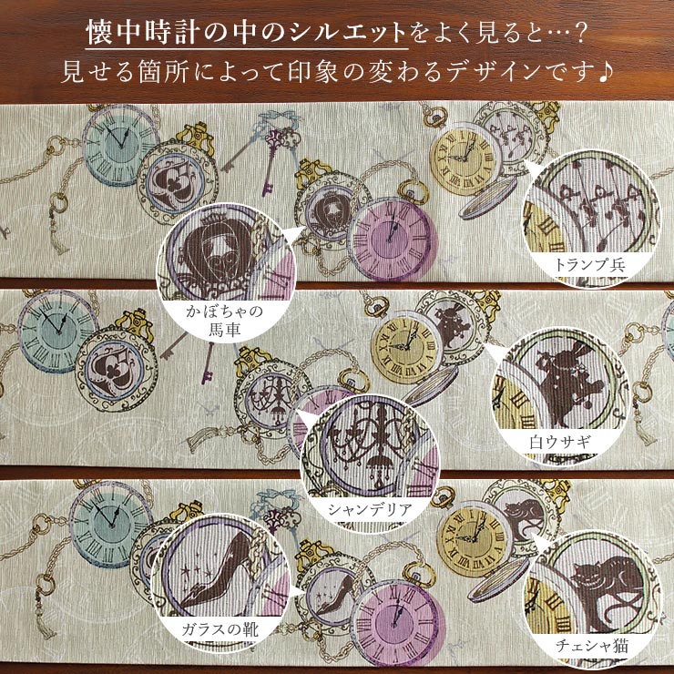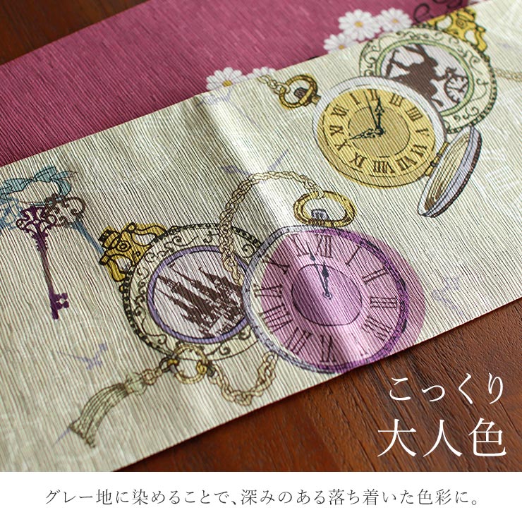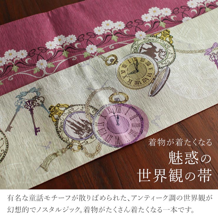 | 着物が着たくなる。 アンティーク感溢れる童話モチーフデザイン。 「ふしぎの国のアリス」「シンデレラ」…有名な童話に登場するモチーフを散りばめたデザインです。 |