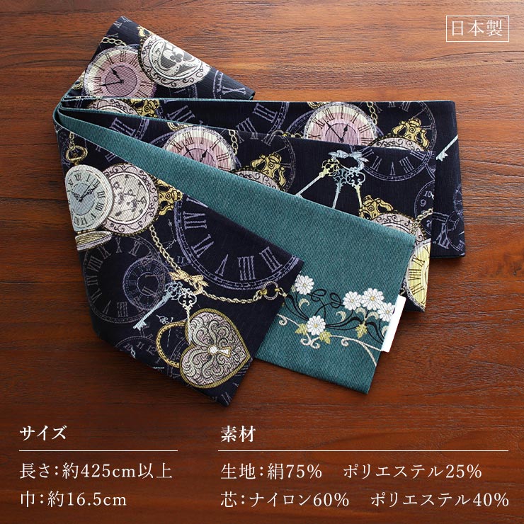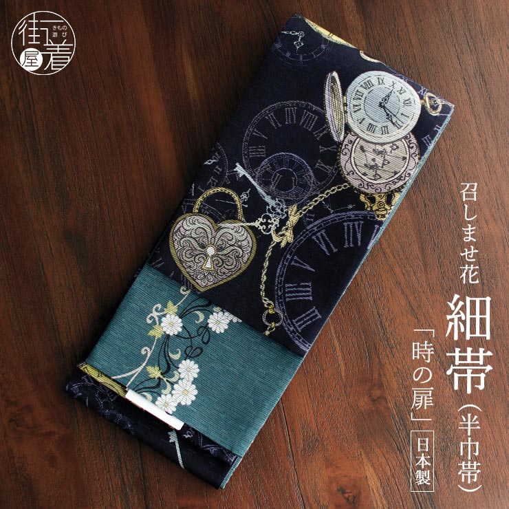 | 深みのある色彩とノスタルジックな世界観。 不思議な世界へいざなう、大人の半巾帯 「召しませ花」 半幅帯/細帯 <時の扉> 黒 <日本製> 「着物を着たくなる着物」をコンセプトにした 「召しませ花」シリーズ。 本当に着物を着たい!と思えるような、心ときめく世界観が広がる半巾帯です。 |