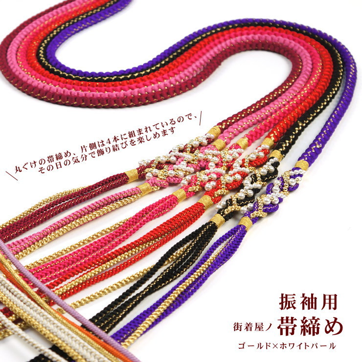 帯締め 振袖用 超目玉 お買い得 ゴールド×ホワイトパール(全10色) 成人式 ふりそで 帯〆 ビビット はんなり 正絹 絹100% 丸組 丸くけ 即日発送