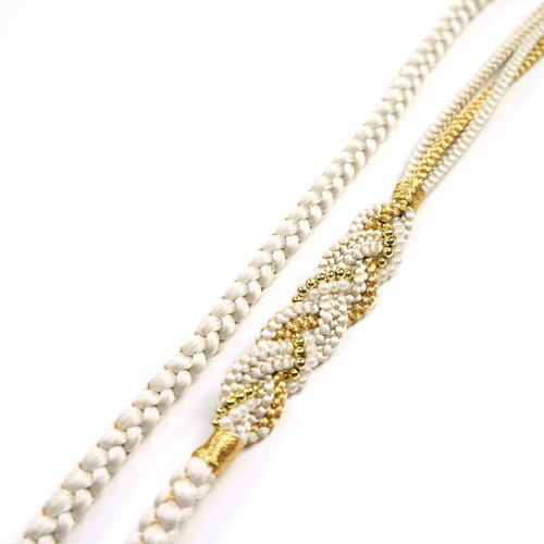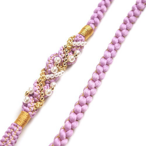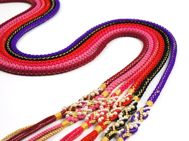 丸ぐけの帯締め、片側は4本に組まれているので、その日の気分で飾り結びを楽しめます。
