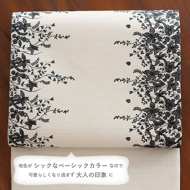 光沢糸を織り込んだ華やかなホワイトベージュに、可憐で繊細な小花柄。地色がシックなベーシックカラーなので、可愛らしくなりすぎず大人の印象に。遠目にも美しく、思わず近くでその繊細な柄行を眺めたくなるデザインです。