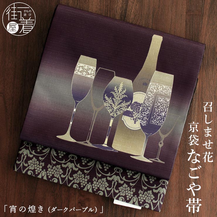 | 見るほどに魅了される、心奪われる世界観 大人の和を楽しむ京袋帯 「召しませ花」 京袋なごや帯 <宵の煌き> ダークパープル 一重太鼓 京袋なごや帯 日本製 |