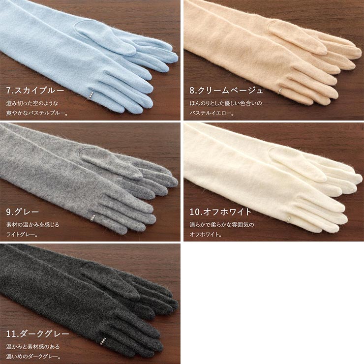 | シンプルで合わせやすい 色展開豊富な正絹羽織ひも 街着屋オリジナル 肘まであったか 超ロング丈アンゴラ手袋 <全10色> 軽量でなめらか、優しく肌を保湿してくれるアンゴラ(うさぎ)は、あたたかさを保つ保温性抜群の素材です。 シンプルですっきりとしているデザインなので、和服だけでなく、ドレスなどカジュアルな洋服にも合わせてコーディネートをお楽しみいただけます。 <日本製> |