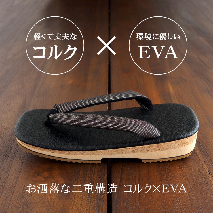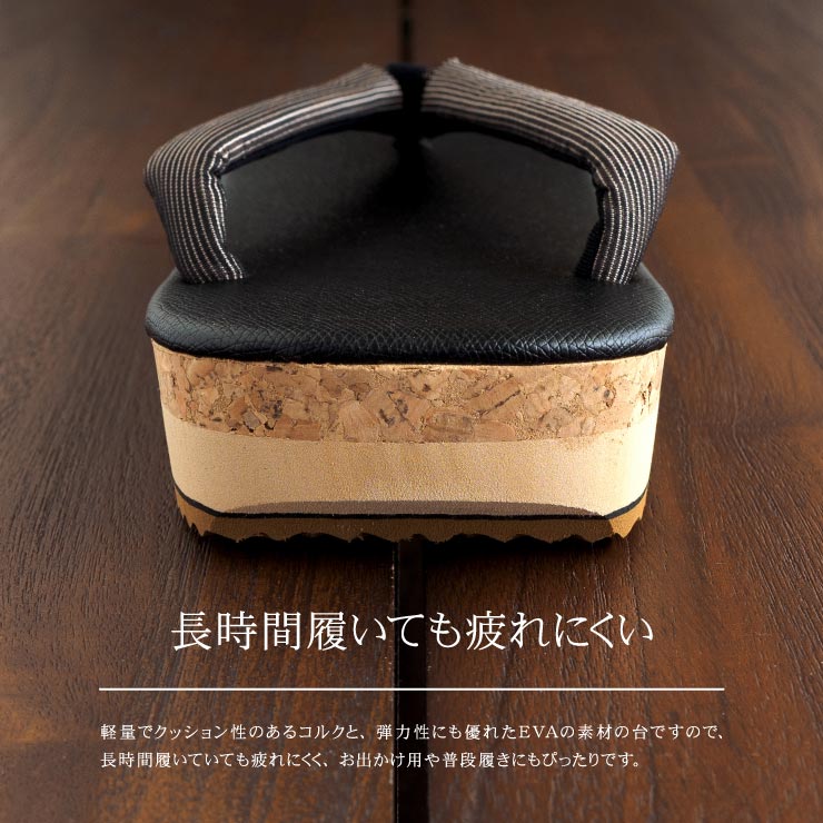 軽量でクッション性のあるコルクと、弾力性にも優れたEVAの素材の台ですので、長時間履いていても疲れにくく、お出かけ用や普段履きにもぴったりです。 |