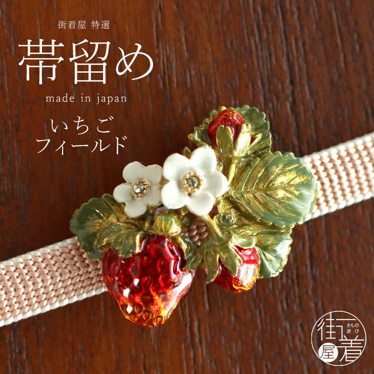 | 畑からそのまま摘んできたかのような瑞々しいイチゴの帯留め。 イチゴの種や葉脈など細かい部分まで再現され、可愛くなりすぎないようリアリティのあるアイテムに仕上げました。葉や実はグラデーションのかかった着彩が施され、熟し具合や陽の光が当たる場所まで想像させられます。イチゴの花言葉は「幸福な家庭」「先見の明」。 |