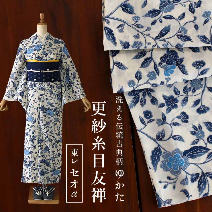 | しっとり大人の夏。 月華美人 の “洗える” 仕立て上がり 浴衣・夏きもの 「東レセオα」プレタ 月華美人 <更紗糸目友禅> オフシロ 着物通の方に選ばれている「月華美人(げっかびじん)」の夏のおしゃれ着。 |