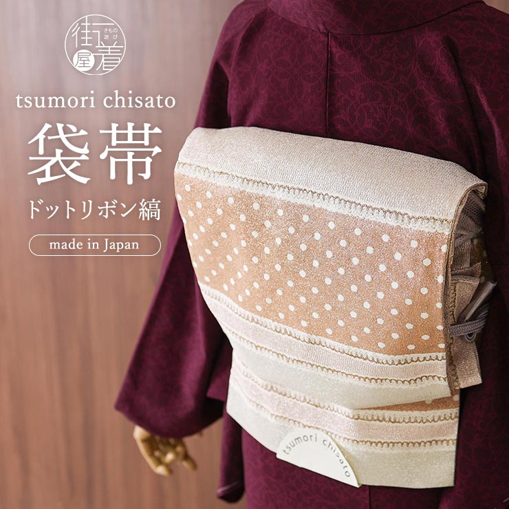 | 晴れの日の装いに 華やかなお仕立て上がり袋帯 「tsumori chisato」 お仕立て上がり袋帯 ドットリボン縞(ピンク) |
