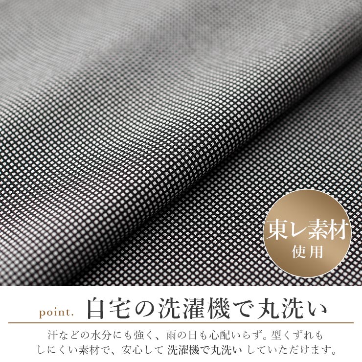 東レ素材使用で、化繊でも美しい染め上がり。水や汗・縮みに強く、東レの「T.Sシステム縫製」ですので型崩れもほとんどありません。着用後は安心してご自宅でお手入れできるので経済的です。