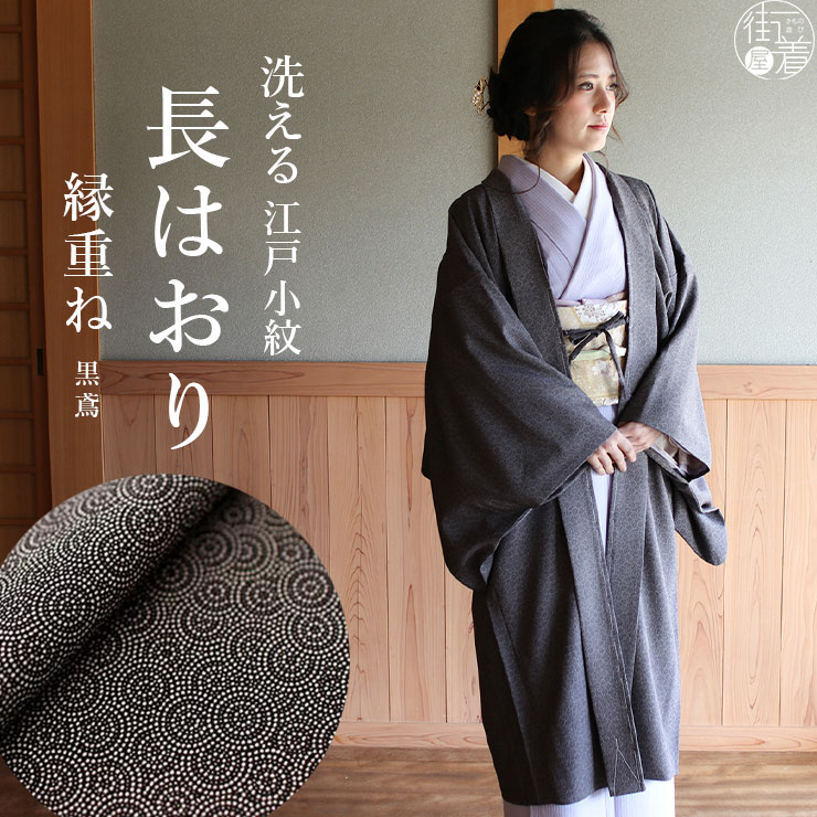 | 上品な江戸小紋柄で、一段上の装い 東レ素材の “洗える” 長羽織 <東レ T.S.システム縫製> オリジナル 長羽織 江戸小紋 - 縁重ね - (黒鳶) 日本製 ちりよけや体型カバーにも |