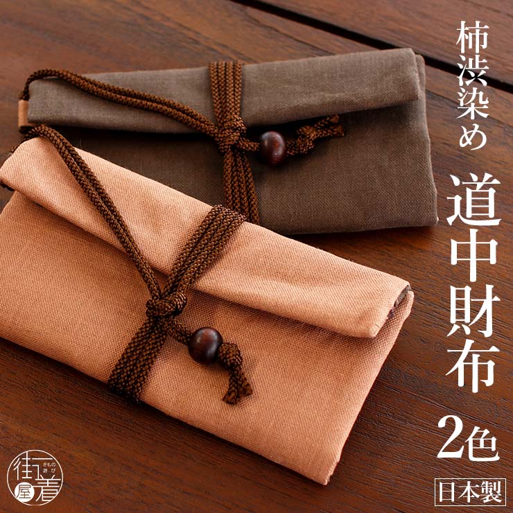 | 使い込むほどに魅力を増す柿渋染め 収納力抜群の道中財布 内ポケット・ファスナー付 道中財布 <柿渋染め> 全2色 <日本製> かさばらず楽々収納。広げると袋状のカタチで収納力抜群。シンプル無地で、着物や浴衣・甚平はもちろん、普段使いにもおすすめです。 |