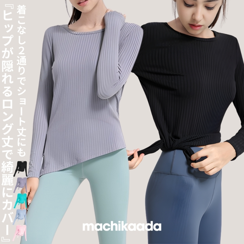 ヨガウェア ヨガ トップス 長袖 ホットヨガ スリット ロング丈 長丈 アシンメトリー リブ 吸収速乾 冷房対策 羽織 快適 レディース おしゃれ かわいい スポーツウェア マチカアダ ピラティス ジム カバー サポート machikaada