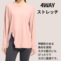 ヨガウェア ヨガ トップス 長袖 ホットヨガ スリット ロング丈 長丈ドライ素材 オーバーサイズ 吸収速乾 冷房対策 快適 819 ロングスリット長袖T