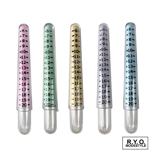 プラスチックの中にサイズを記した紙が入っているアイディア商品です。持ち運びなどに便利です。