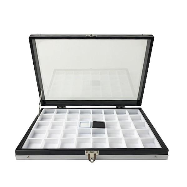 30mm角のルースケースを40個収納できるガラスケースです。