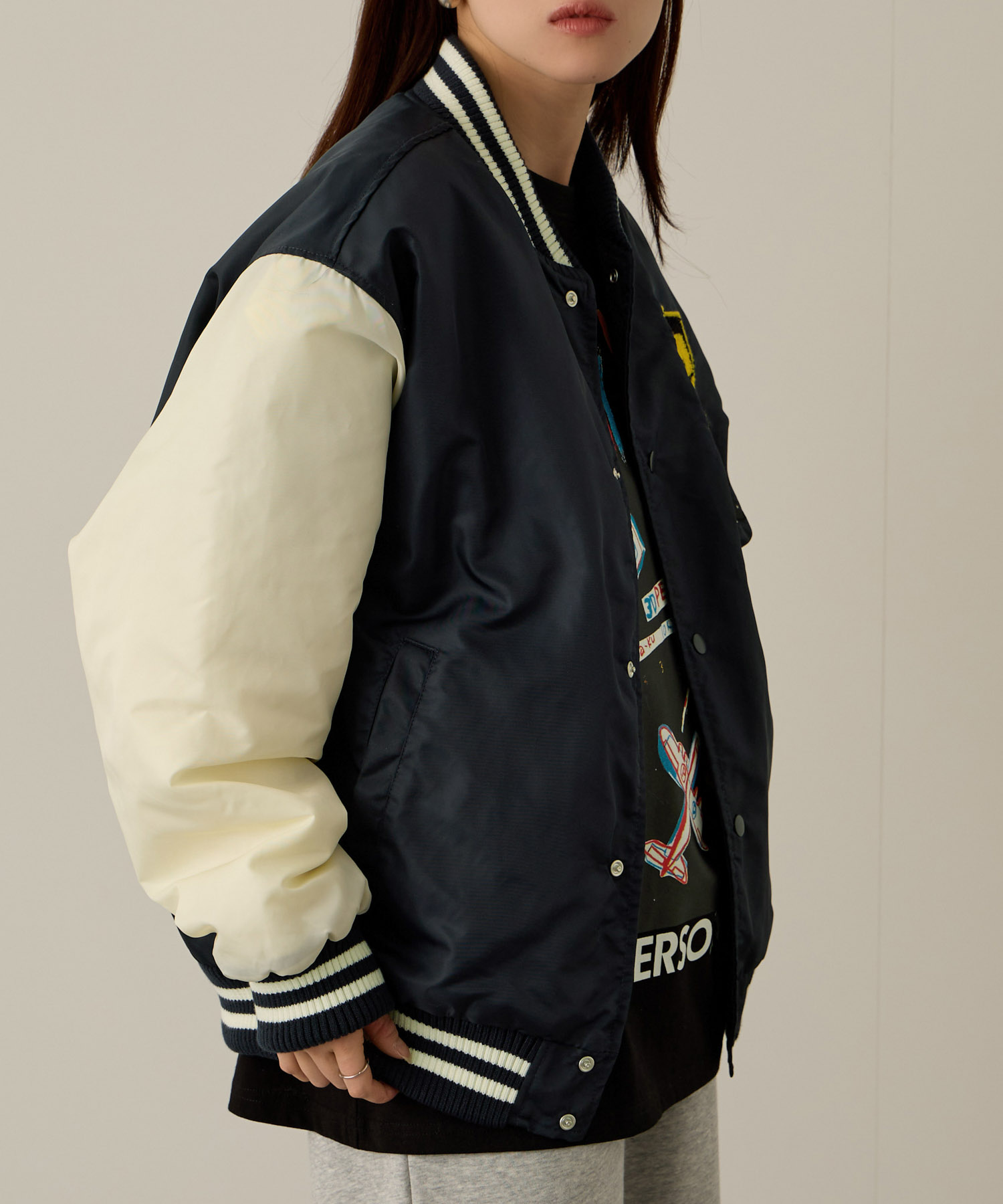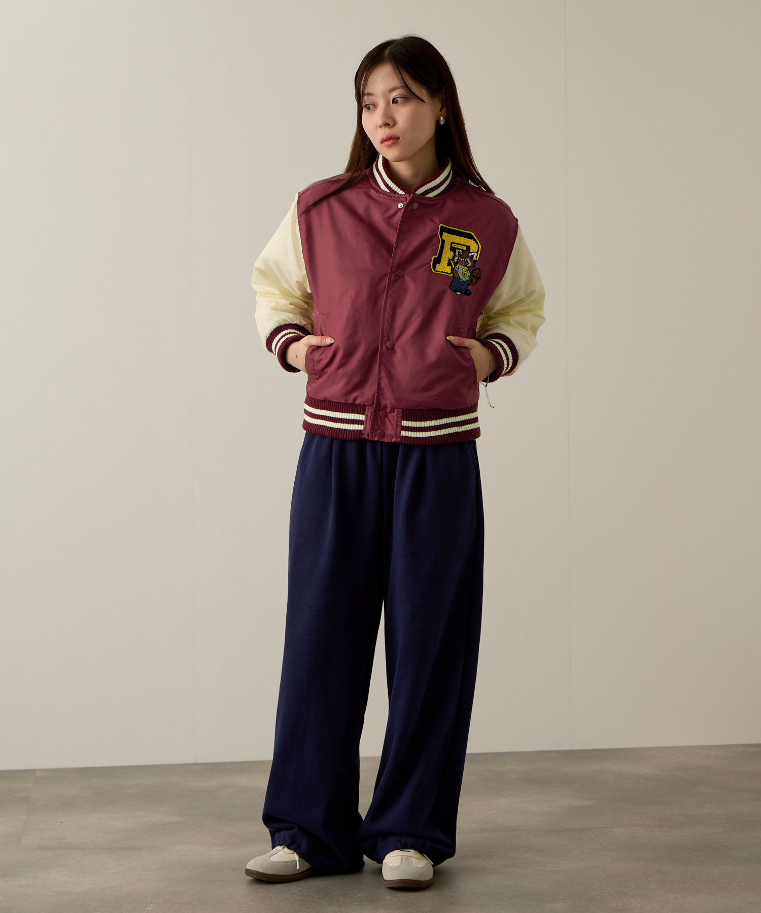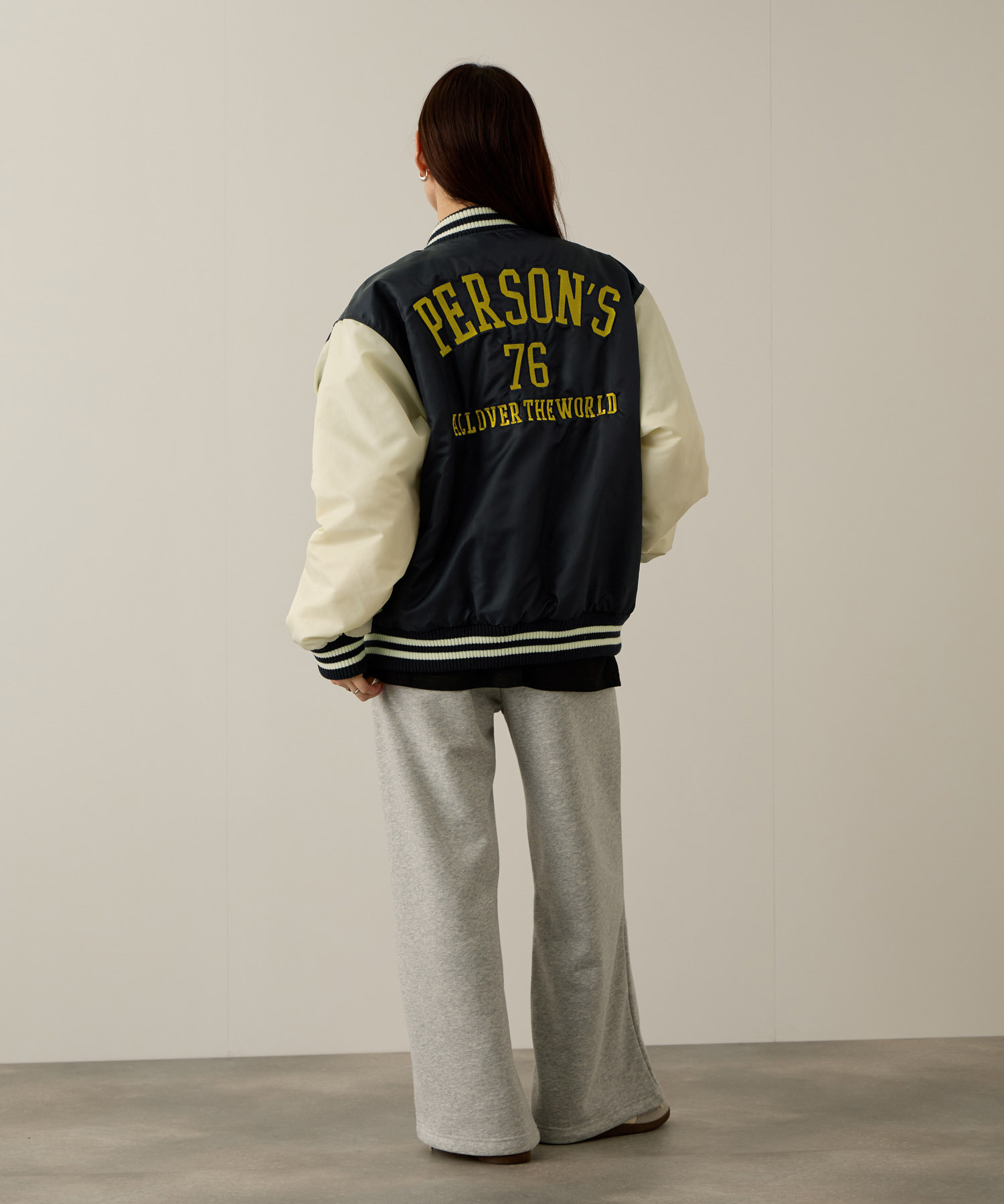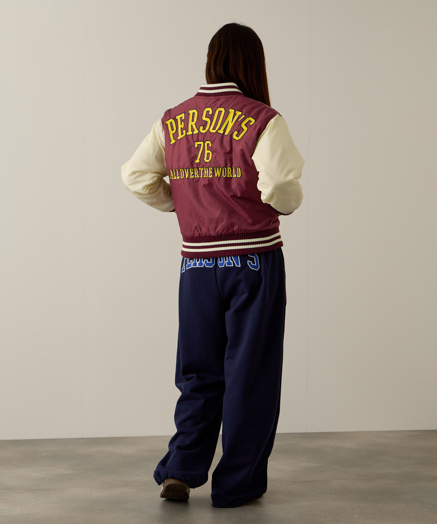 | ナイロン素材に前後の刺繍ワッペンがストリートに映える、主役級のPERSON'S別注スタジャン。 カラーは、レッド・ネイビーの2色展開です。 ■デザイン どこかレトロでポップな空気感を纏った、PERSON'Sならではの別注スタジアムジャンパーが登場。 背中にはインパクトのあるブランドロゴのワッペン刺繍を施し、フロントには愛らしいアニマルモチーフをオン。 360度どこから見ても抜かりない、アートな遊び心が詰まった一着です。 ゆとりのあるシルエットと鮮やかな配色の切り替えが、日常のコーディネートをエネルギッシュに彩ります。 ■ポイント 表地:風を通しにくい、ナイロン素材を使用。 中綿:中綿入りで、心地よい暖かさを実現。 裏地:袖通しがなめらかなポリエステルで、重ね着もストレスフリー。 ■コーディネート オーバーサイズなサイジングを活かして、ルーズなデニムやスウェットパンツと合わせたストリートスタイルが相性◎ シンプルな着こなしに羽織るだけで、PERSON'Sのアートワークが映えるこなれたルックが完成します。 パートナーとのシェアや、色違いでのリンクコーデも楽しめます。 モデル身長:161cm 着用サイズ:レッドS、ネイビーF ********************** 透け感 : なし 裏地 : あり 伸縮性 : なし 光沢感 : あり 生地の厚さ : 普通 ********************** ※Sはレディース(標準)サイズ、Fはメンズも着用可能なユニセックスサイズです。 ※ご覧になられているモニター環境や端末により色の見え方に違いがございますので、ご了承ください。 ※商品梱包用の透明ビニール袋に「タグ付け時に発生する切り込み」がある場合がございます。 サステナブルな取り組みへの観点から、袋の入れ替えを行わない事にご協力をお願い致します。 ■素材 表地:ナイロン100%、 裏地:ポリエステル100%、 中綿:ポリエステル100%、 リブ部分:ポリエステル95%、ポリウレタン5% ■洗濯方法 洗濯機/ネット使用 ■生産国 中国