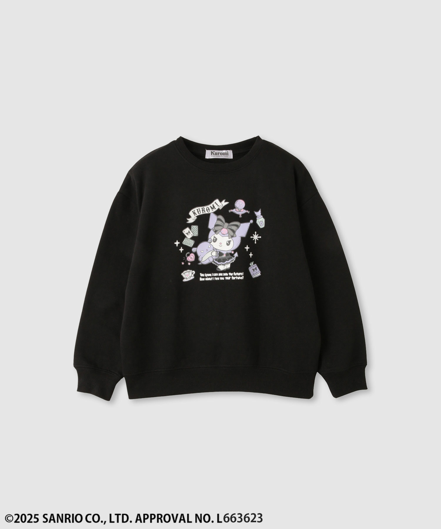 | クロミがかわいい裏起毛トレーナー。 カラーは、ブラックです。 ■デザイン ゴシック調の占いモチーフがキュートな一枚。 今どきのゆるシルエットで、お子様がストレスなく快適に過ごせます。 ■ポイント 裏起毛素材を使用し、肌触りが良く温かみのある着心地を実現。 通園・通学からお出かけまで活躍度の高いアイテムです。 ■コーディネート ボトムスを選ばず着ていただけます。 デニムでカジュアルにも、キュロットやスカートでガーリーにも◎ ※ご覧になられているモニター環境や端末により色の見え方に違いがございますので、ご了承ください。 ※商品梱包用の透明ビニール袋に「タグ付け時に発生する切り込み」がある場合がございます。 サステナブルな取り組みへの観点から、袋の入れ替えを行わない事にご協力をお願い致します。 ■素材 表地:ポリエステル65%、綿35% ■洗濯方法 洗濯機/ネット使用 ■生産国 中国