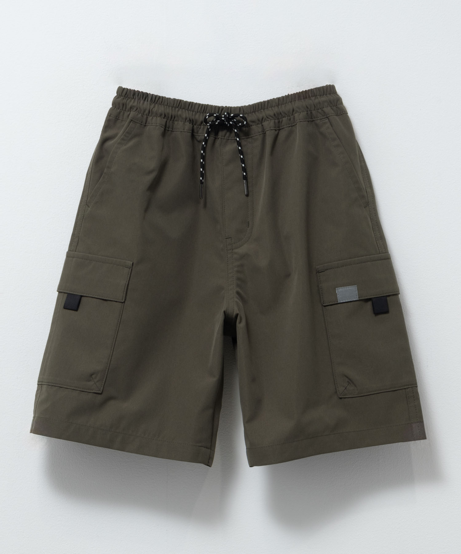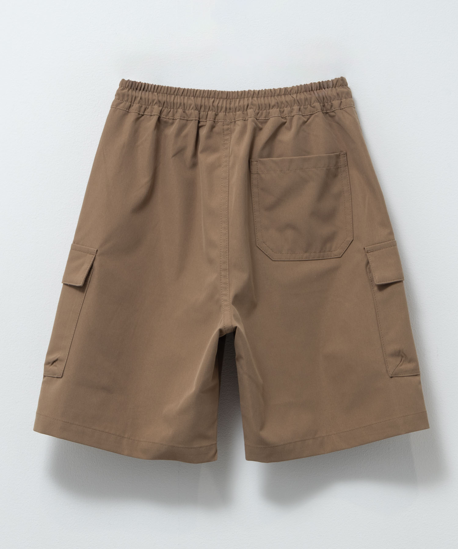 | はっ水加工を施したショート丈のカーゴパンツ。 カラーは、ブラック・ベージュ・カーキの3色展開です。 ■デザイン アクティブなサイドカーゴポケット、ウエスト紐がトレンド感をプラス。 暑い季節に活躍するショートパンツです。 ■ポイント ポリエステルの軽さのある素材を使用。 表面のはっ水加工で、ちょっとした雨、水場でも着用いただけます。 ■コーディネート カジュアルなTシャツと合わせたストリートスタイルがおすすめ。 通学やレジャーなどデイリーにはいていただけます。 ※ご覧になられているモニター環境や端末により色の見え方に違いがございますので、ご了承ください。 ※商品梱包用の透明ビニール袋に「タグ付け時に発生する切り込み」がある場合がございます。 サステナブルな取り組みへの観点から、袋の入れ替えを行わない事にご協力をお願い致します。 ■素材 表地:ポリエステル100% ■洗濯方法 洗濯機/ネット使用 ■生産国 バングラデシュ