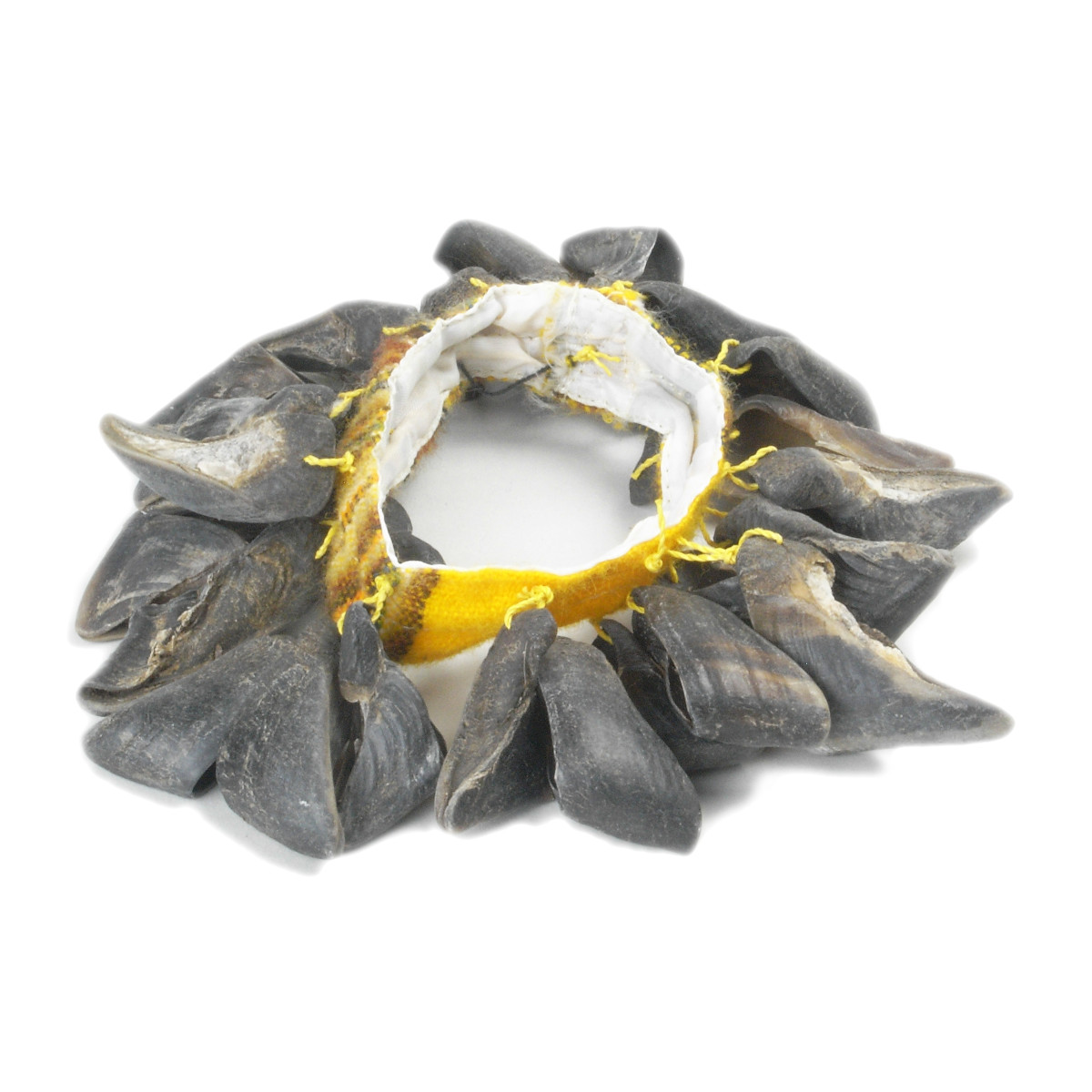 チャフチャスは、山羊や羊の爪を布に縫い付け、マラカスのように振って音を出すアンデスのリズム楽器です。掲載写真の実物をそのままお届けしますので、イメージ違いの心配もありません。ボリビア製。