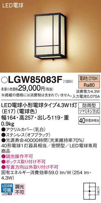 LGW85083F ポーチライト パナソニック 壁直付型 電球色 防雨型 40形 法人様限定販売