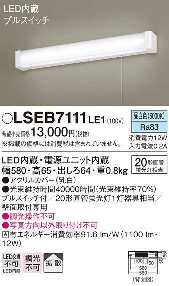 在庫あり LSEB7111LE1 パナソニック キッチンライト 流し元灯 壁面取付専用タイプ プルスイッチ付 相当品 LGB85038LE1 [ LSEB7111 LE1 ]