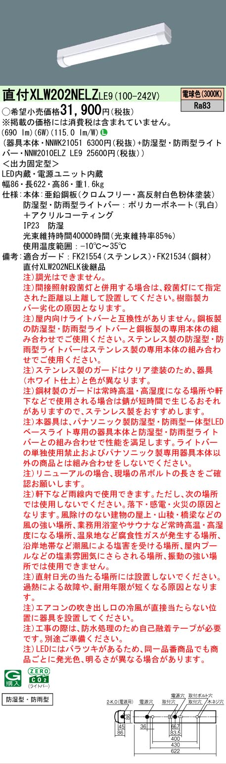 パナソニック 直付 XLW202NELZ LE9 防湿型 防雨型 iスタイル 電球色 800lmタイプ FL20形器具 1灯 相当 法人様限定販売