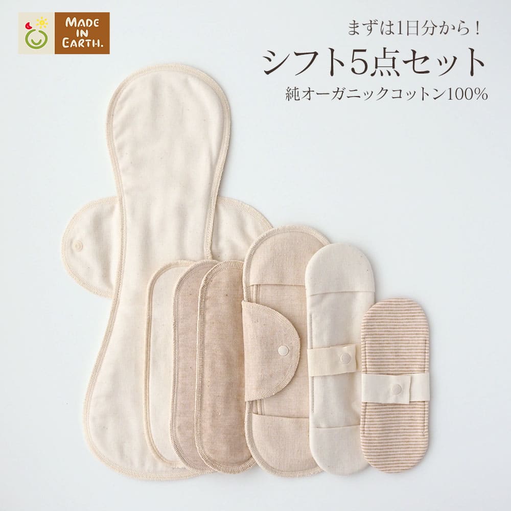 ・メイド・イン・アースの純オーガニックコットン100%布ナプキンのお洗濯には、別売のアルカリ性洗剤・ウォッシュヘルパーがおすすめです。 【布ナプキンのお洗濯】 おりものが多かったり、経血がついた場合はつけ置き洗いがおすすめです。メイド・イン・アースの「ウォッシュヘルパー」(別売り)を少し溶かしたバケツ等の容器で、数時間つけ置きをしてください。洗濯機での仕上げ洗いの際は、つけ置きや手洗いで汚れを落としてから洗濯機でお洗いください。 【お洗濯後の干す際のご注意】 洗濯機での脱水後はシワを伸ばして干してください。手で軽く伸ばしながら形をしっかり整えることで形崩れが少なく、乾いたあとの布ナプキンも心地よくご使用いただけます。なお、乾燥機のご使用は大きな縮みの原因になりますので、お控えください。 |