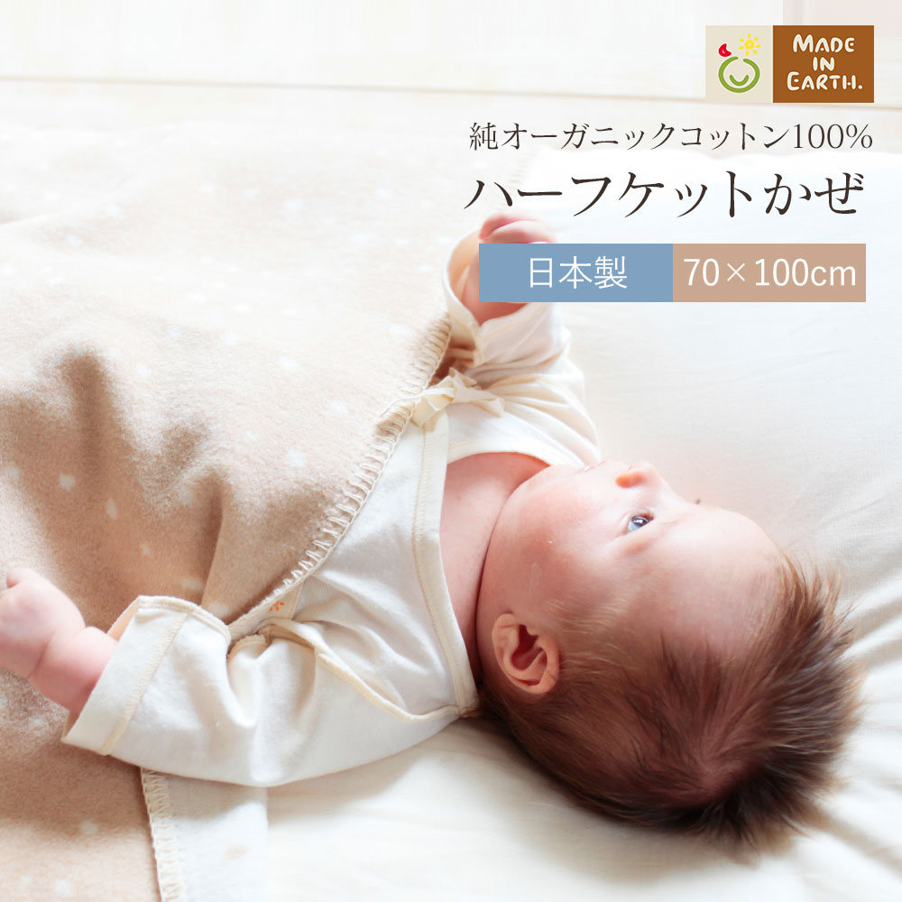 膝掛けとしても、赤ちゃんのベビー綿毛布としても人気の純オーガニックコットンのハーフケット。