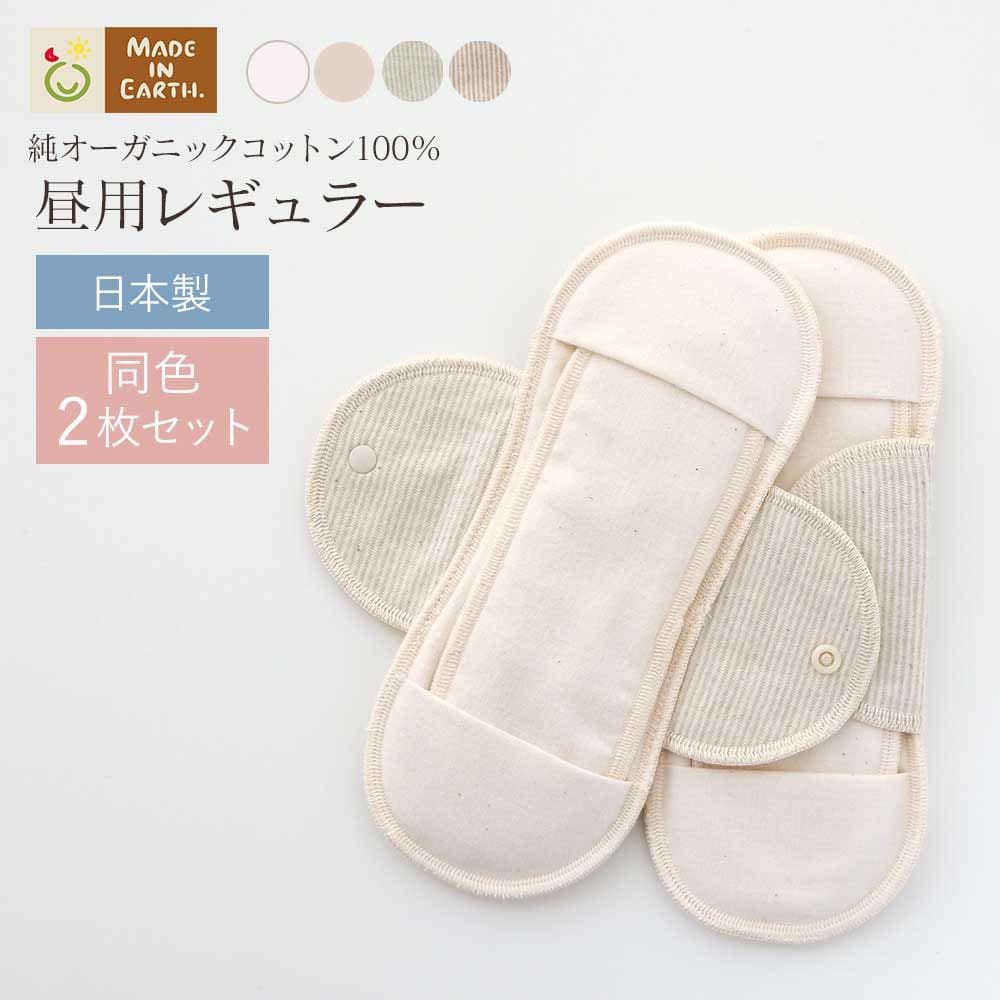 メイド・イン・アースの布ナプキンは吸水・防水のための化学繊維を使用せず、スナップボタン以外は縫い糸まで100%オーガニックコットン。製造時にも脱脂や漂白、染色などの化学的な処理は行わずに、天然の優しい風合いをそのまま残しています。コットン本来の柔かさでつけているだけでほっとする温もりの布ナプキンです。