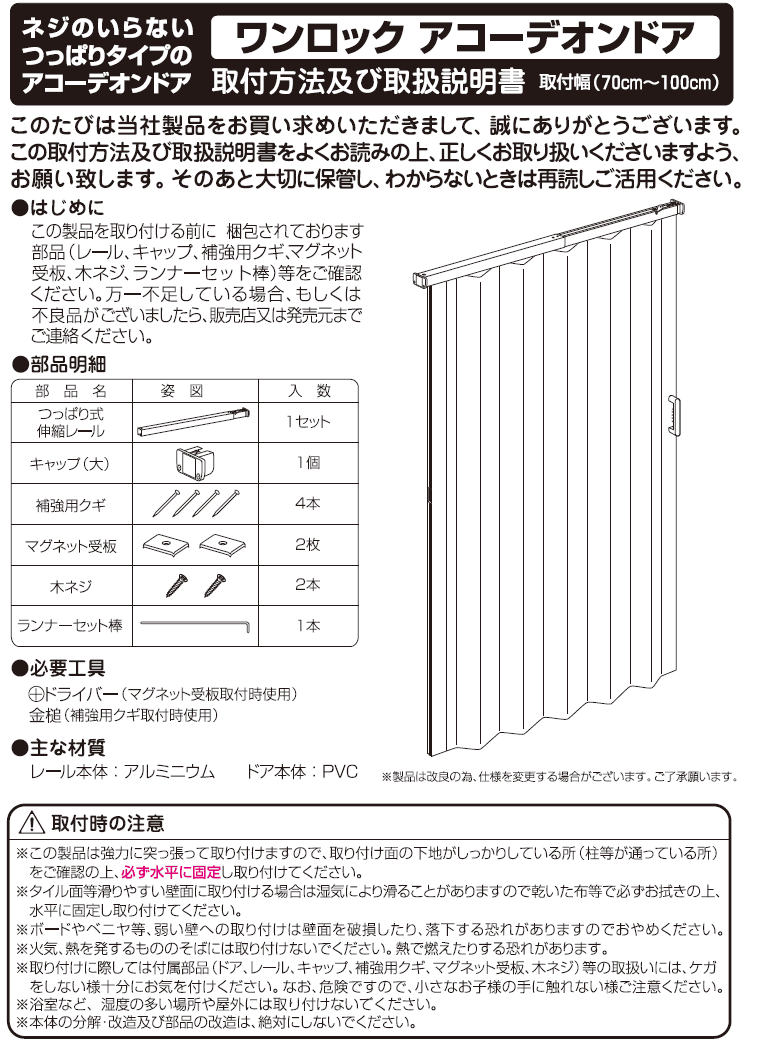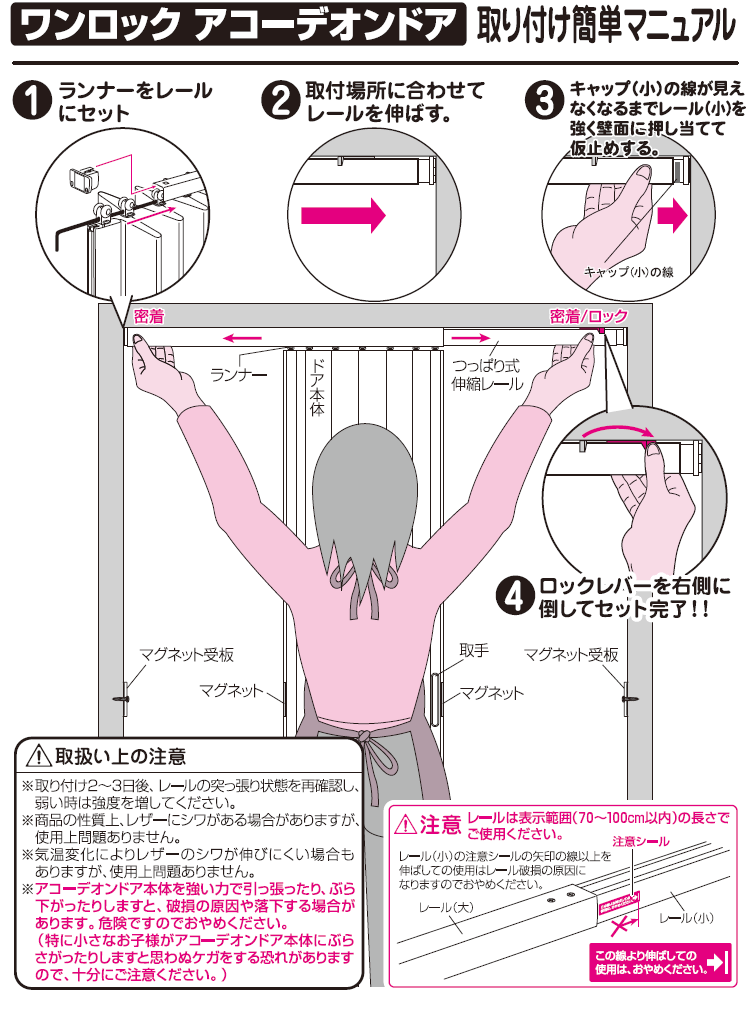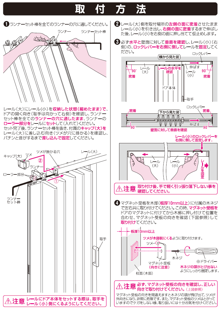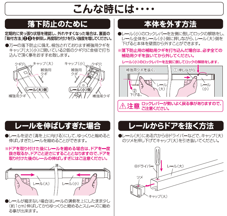・ネジを必要としないつっぱりタイプのレールを使用したドア
