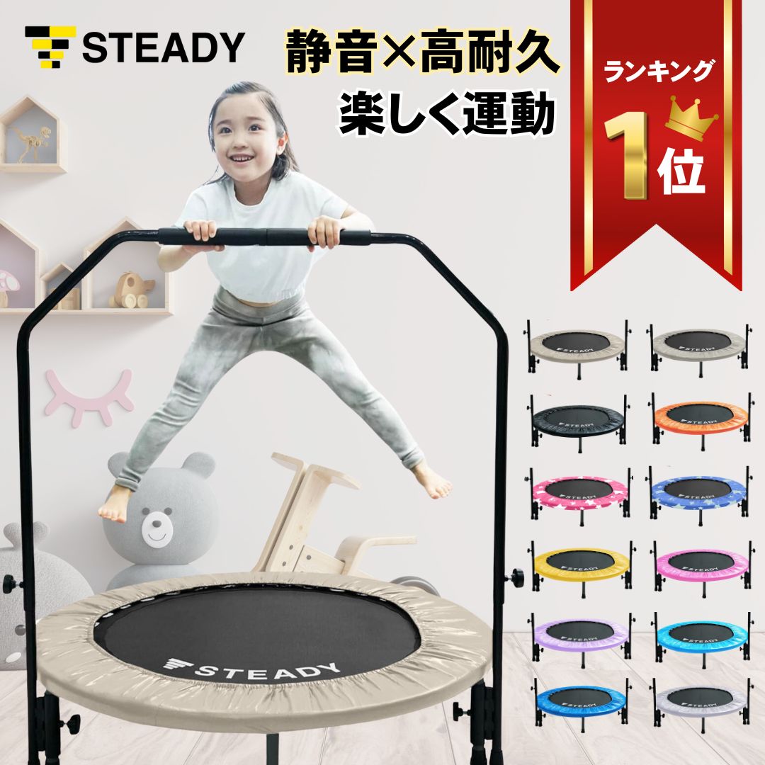 トランポリン 手すり付き 家庭用 静音 折りたたみ 102cm 耐荷重150kg 高耐久 衝撃分散キャップ 365日保証 STEADY ST134-Bar