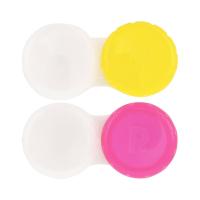 ソフトコンタクトレンズ用のケース。イエローとピンクの2色セット。ケースもきちんと交換しましょう。