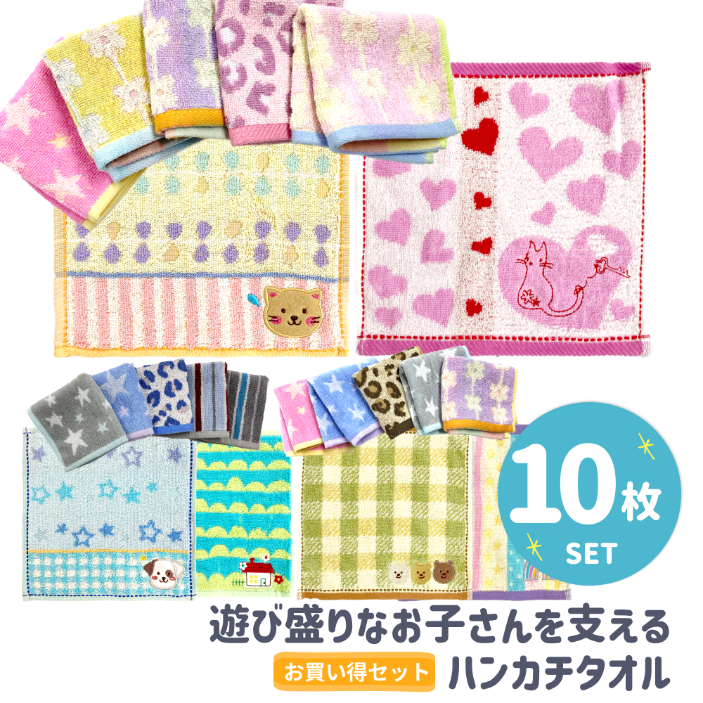 ハンカチタオル 4枚選べる 10枚 はんかちセット 子供 ミニハンカチ 20cm 男の子 女の子 タオルギフト 送料無料