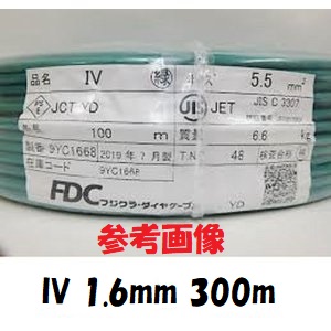 IV 1.6mm 緑 300m フジクラ ビニル絶縁電線 IV電線 アース線 IV1.6 IV1.6mm 法人個人事業主様限定