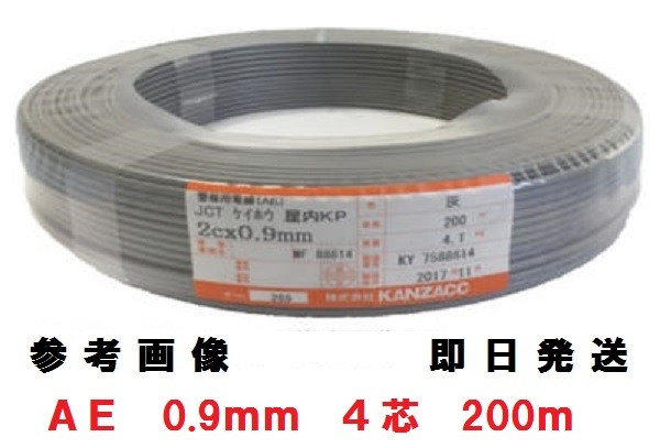 即日発送 AE(KP)0.9mm×4C 屋内用 警報用ケーブル 200m巻 色 灰 (OP線)KP0.9mm x 4C KANZACC AE0.9x4c
