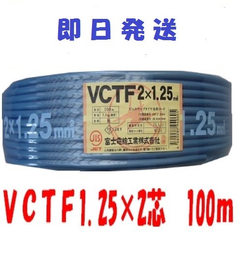 vctf 2芯 電線 VCTFケーブル ビニルキャプタイヤコード 2芯 1.25mm2×100m (1.25sq 2c) VCTF1.25x2