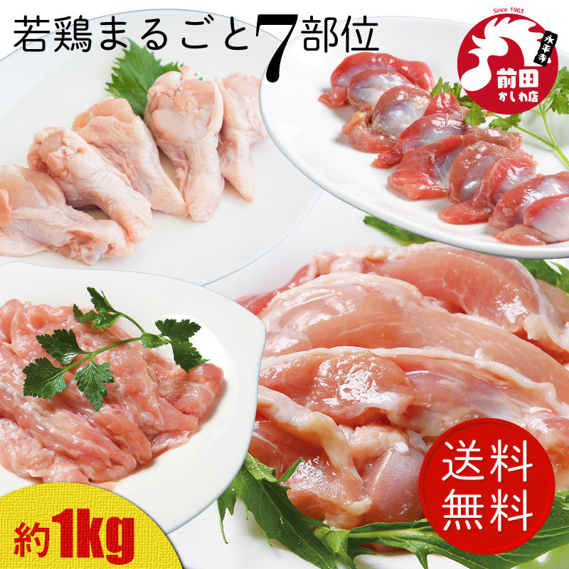 国産若鶏まるごとお試しセット[約1kg](冷凍) 送料無料 桜姫もも肉 こにく(せせり) 鳥ハラミ 砂肝 肩肉 手羽先 手羽元 詰め合わせ