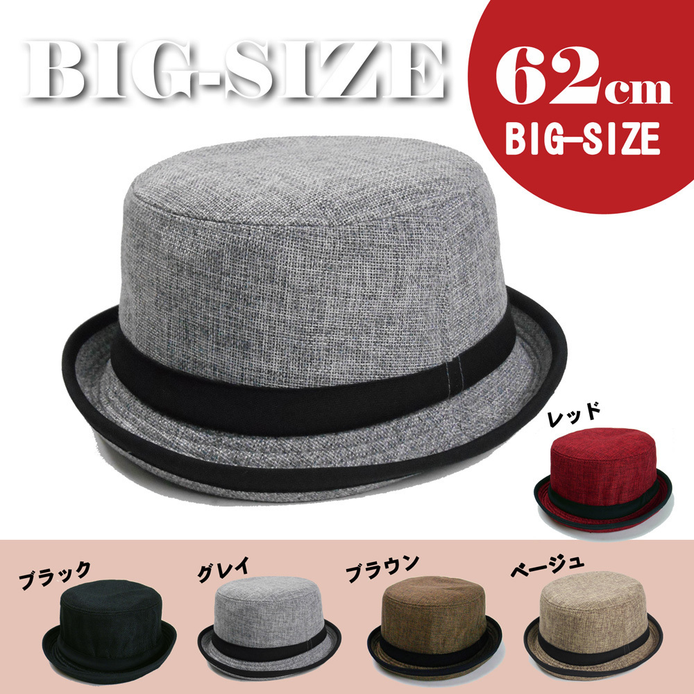 帽子 大きいサイズ/ビッグハット62cm サマー麻調ポークパイハット/5カラー/メンズ&レディース男女兼用