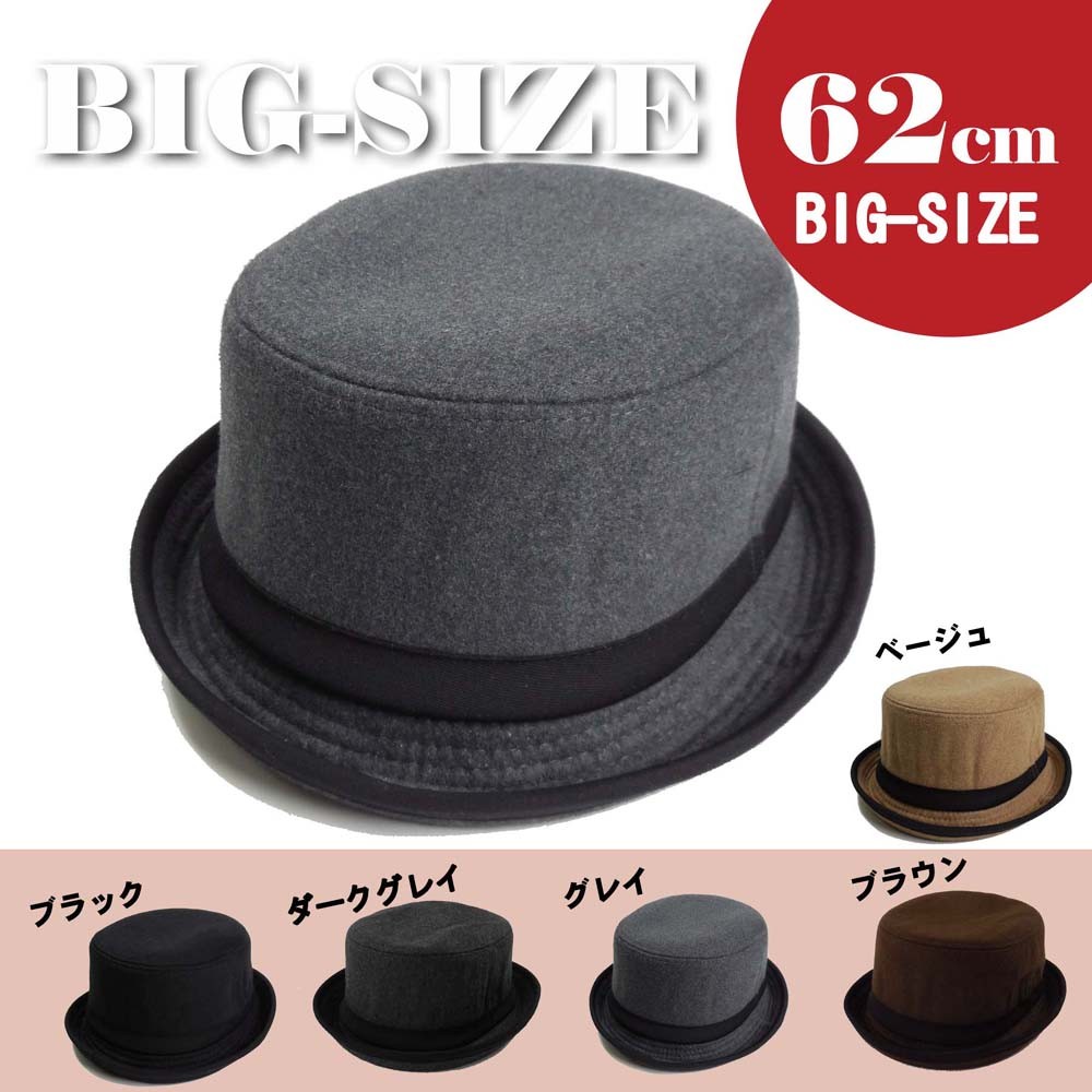 帽子 大きいサイズ/ビッグハット62cm フェルトポークパイハット・ウール100%・5カラー/男女兼用