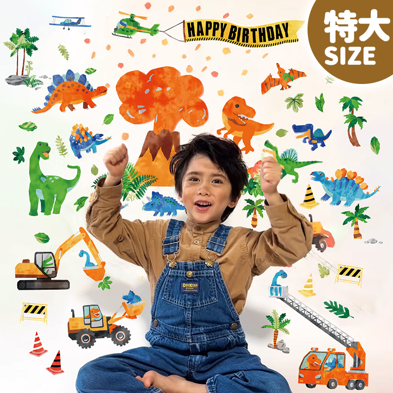 ウォールステッカー バースデー ハーフバースデー 誕生日 お祝い 特大 サイズ 【株式会社恐竜】賃貸 壁紙 はがせる 壁 キッズ ステッカー 恐竜 車 受注印刷