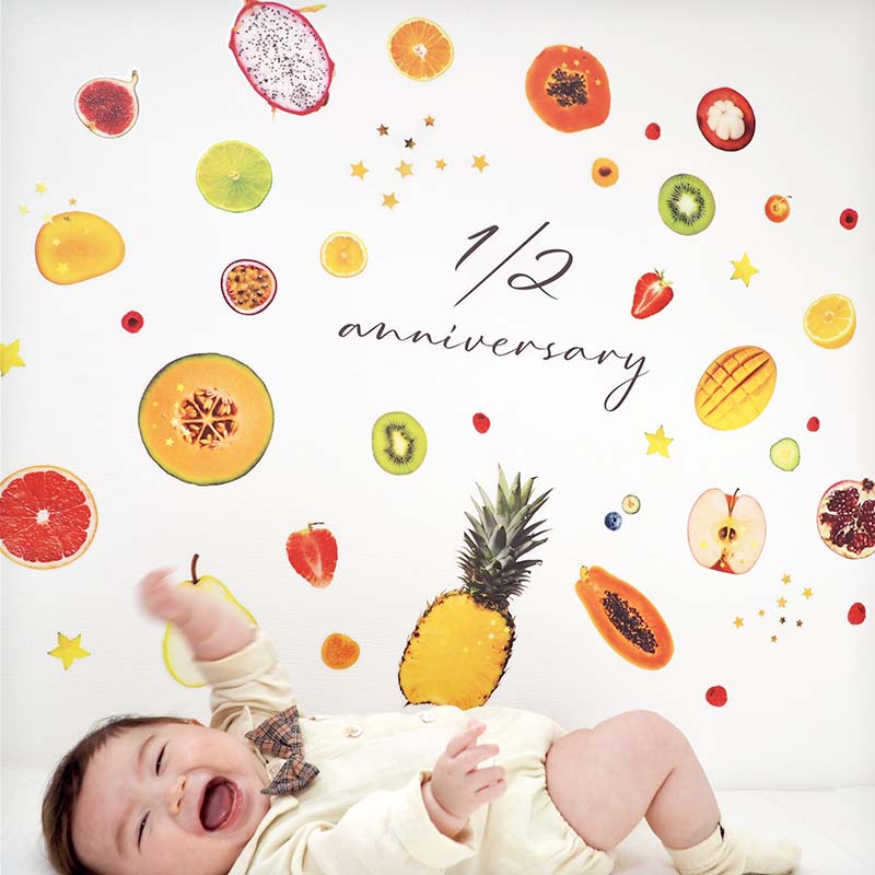 ウォールステッカー カットフルーツ フェイク 果物 フルーツ 半分 ハーフバースデー ハーフ 6か月 バースデー 誕生日 ベビー 赤ちゃん 男の子 女の子 はがせる