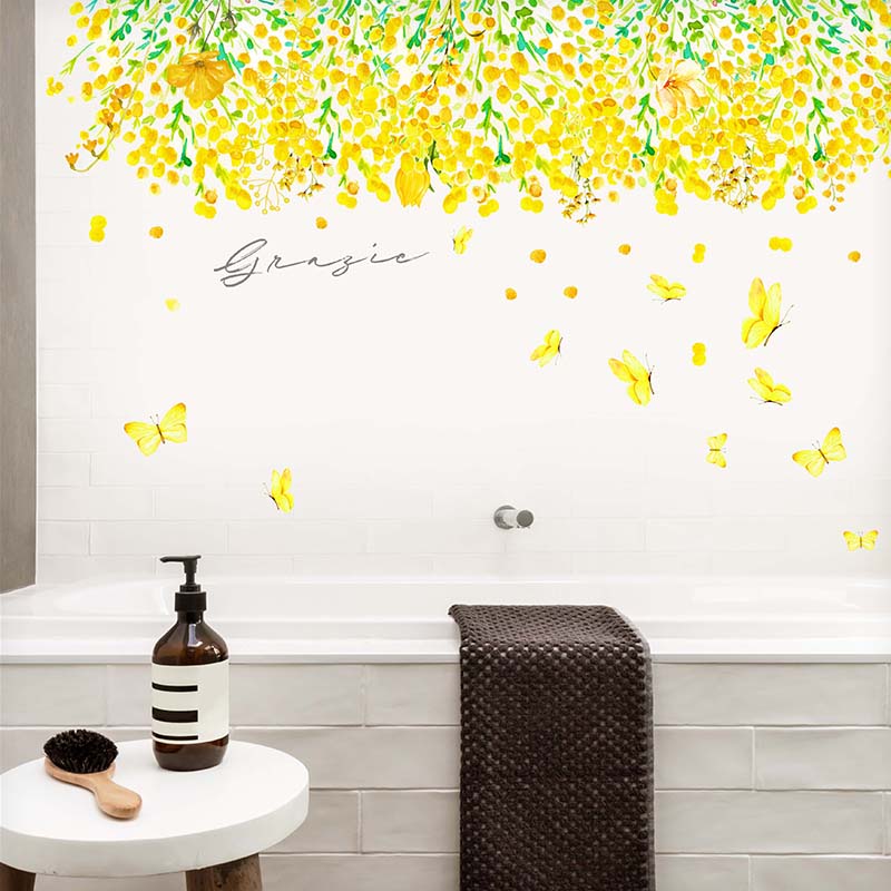 ウォールステッカー ミモザ 国際女性デー 【ふんわりミモザ】 はがせる 壁 シール ステッカー 壁紙 飾りつけ おしゃれ 北欧 植物 木 葉 草 観葉植物 受注印刷
